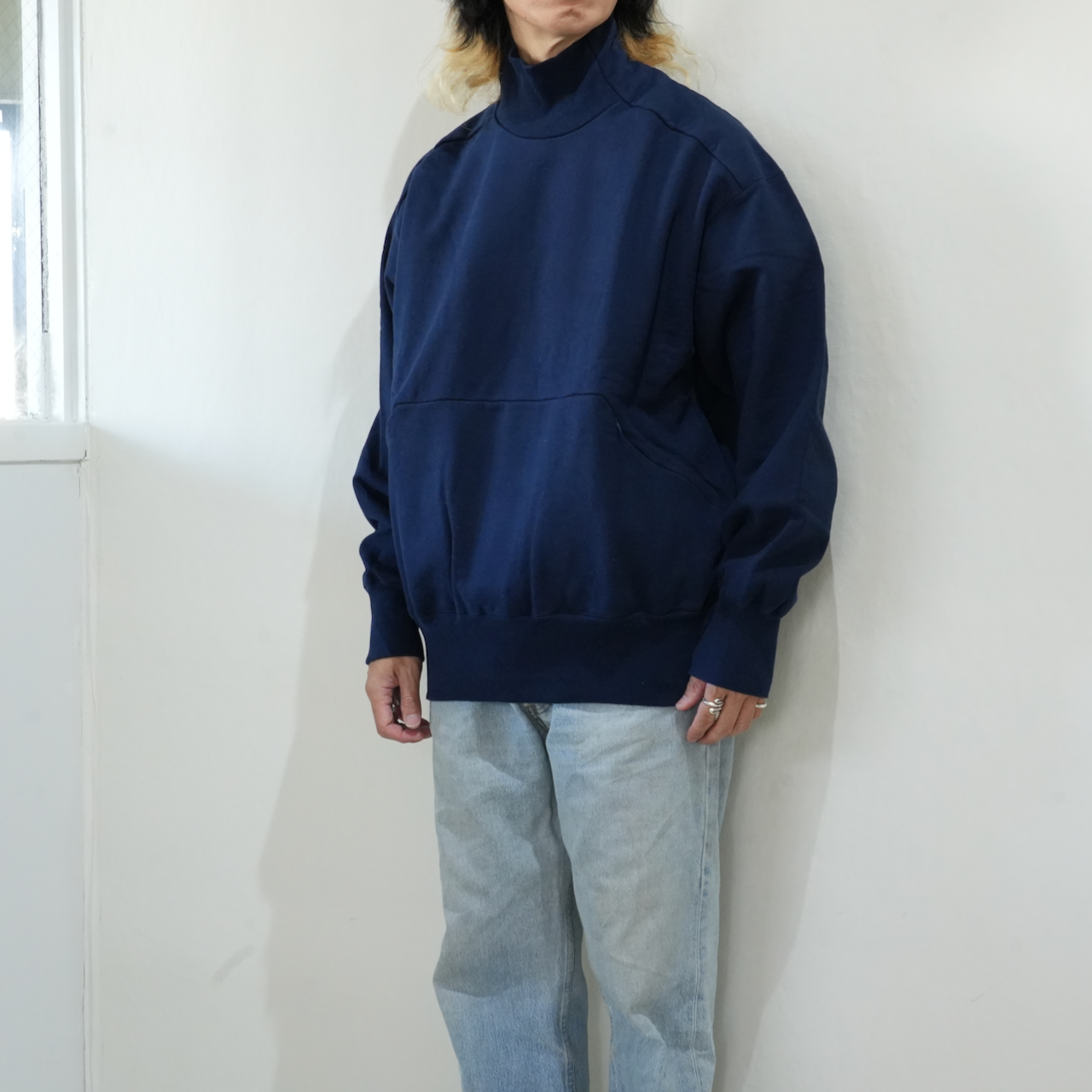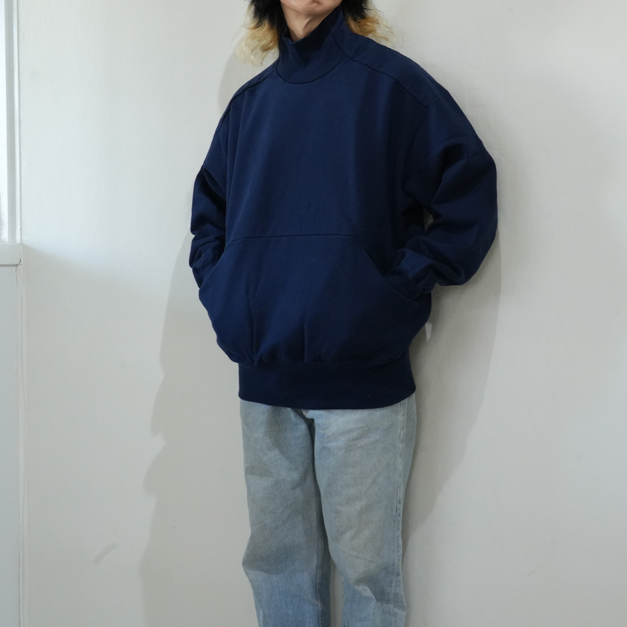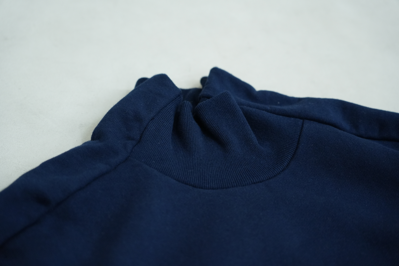 ヘビーオンスのもっちりとしたスウェット裏毛生地で作ったハイネックのスウェット。