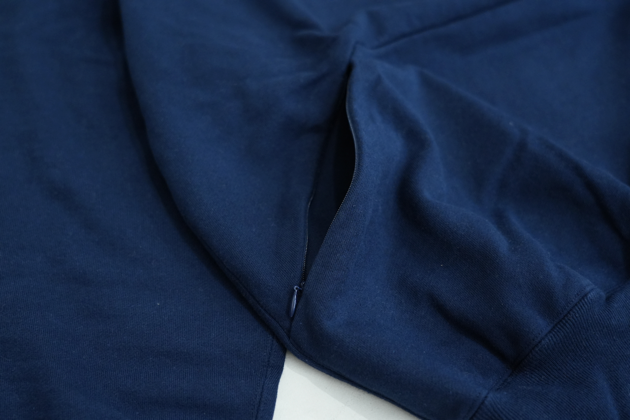 首リブの両サイドに見頃生地を挟見込むことで、程よいフィット感に仕上がっています。