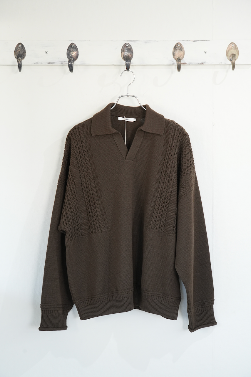 形としては近年、個人的にも猛烈...に推しているスキッパーシャツをディテールに初雪をイメージしたYASHIKIの世界観とも相まって今季1〜2に好きなニットに仕上がりました。