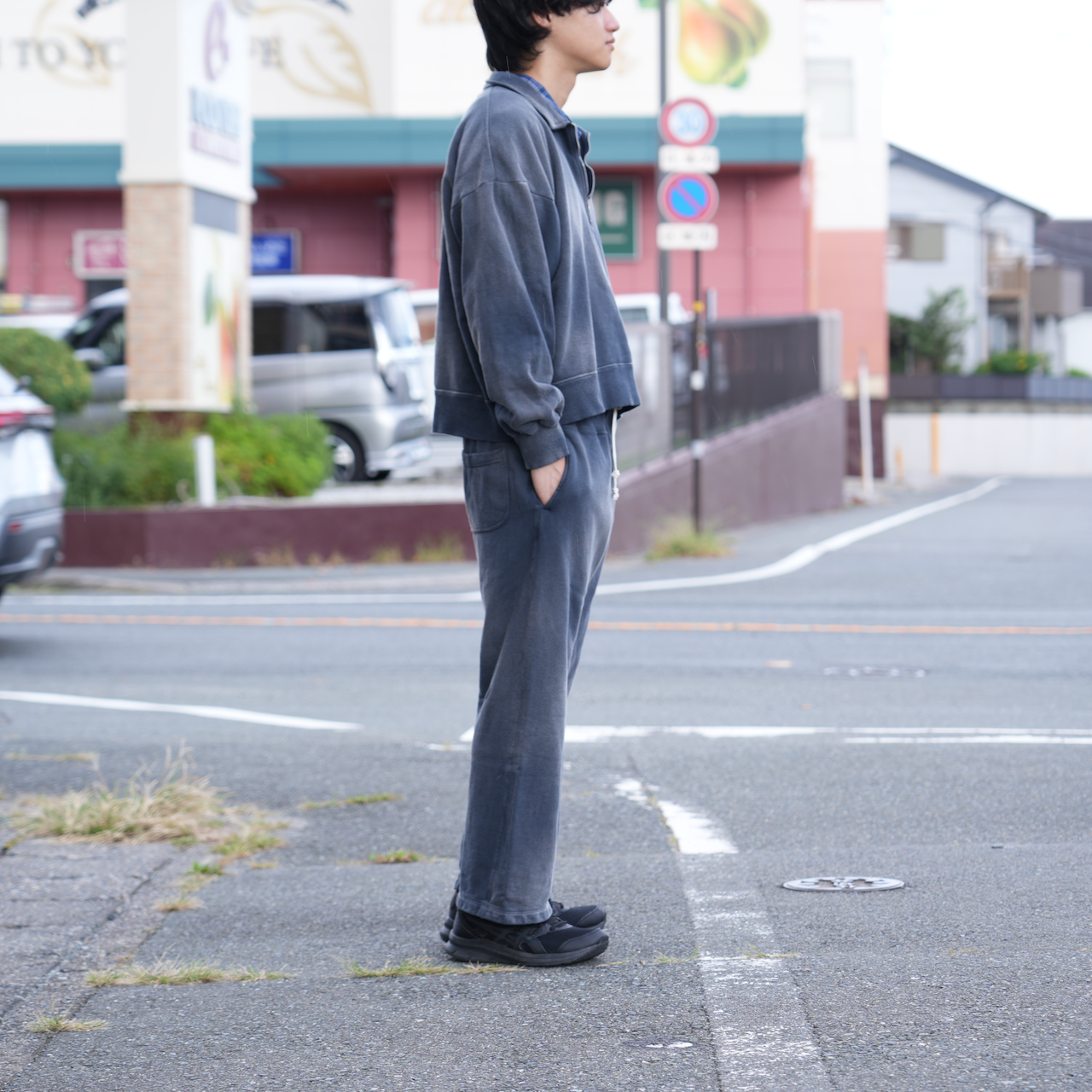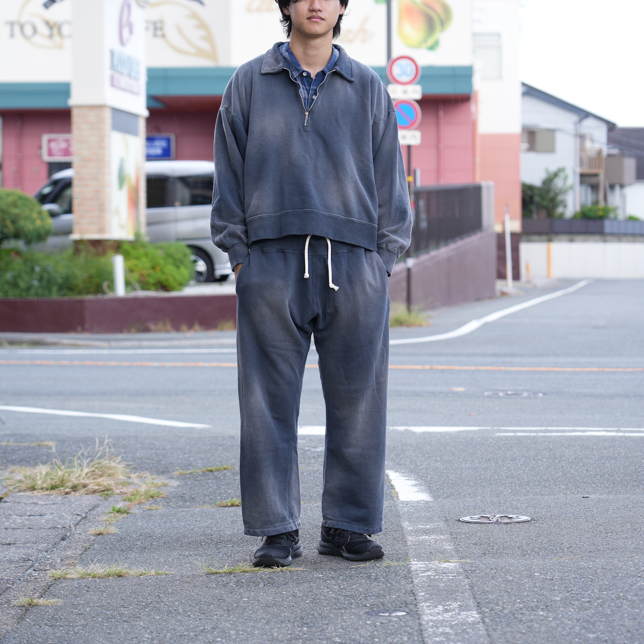 INTĒRIM・VINTAGE FADE HALF ZIP COLLAR SWEAT SHIRT