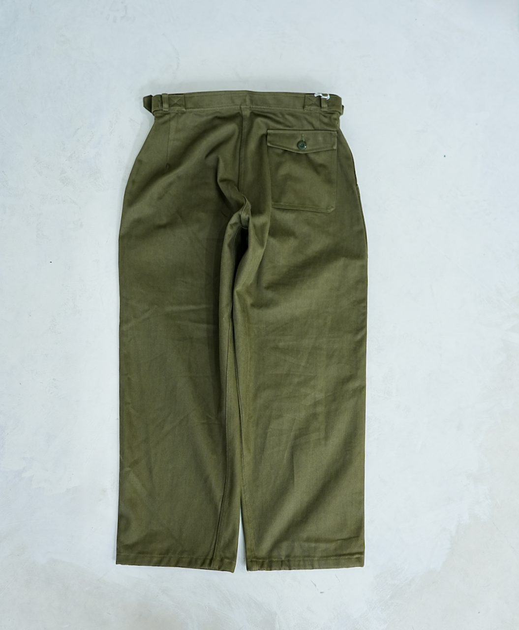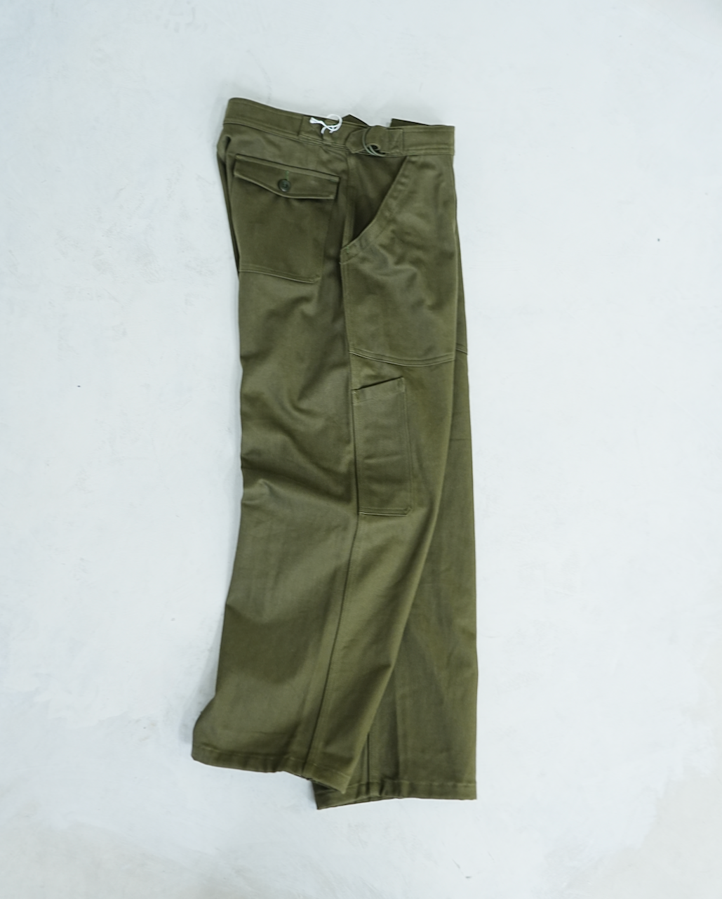 フランス空軍で機械整備などをしていたエンジニア達が着⽤していた50s~60sのヴィンテージのミリタリーパンツから着想し、サイズバランスや細かなディテールをアップデートしたフレンチメカニックパンツ。M47を思わせるボリューミーなストレートシルエットで、アメリカ軍のベイカーパンツを思わせるパッチポケットや⼤ぶりのDカンを配したサイドアジャスター、右もものツールポケットなど、実⽤に根差した機能的なパーツが盛り込まれでいます。