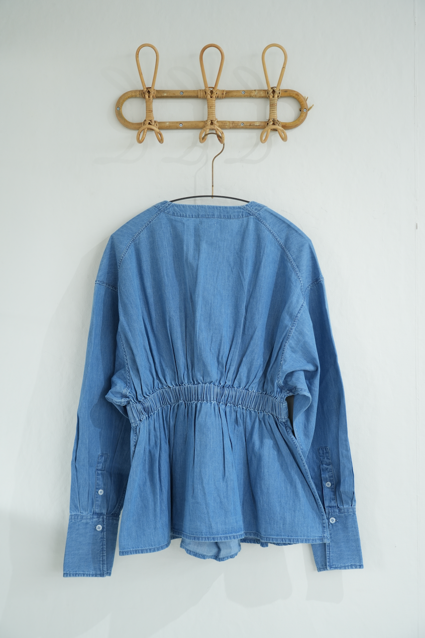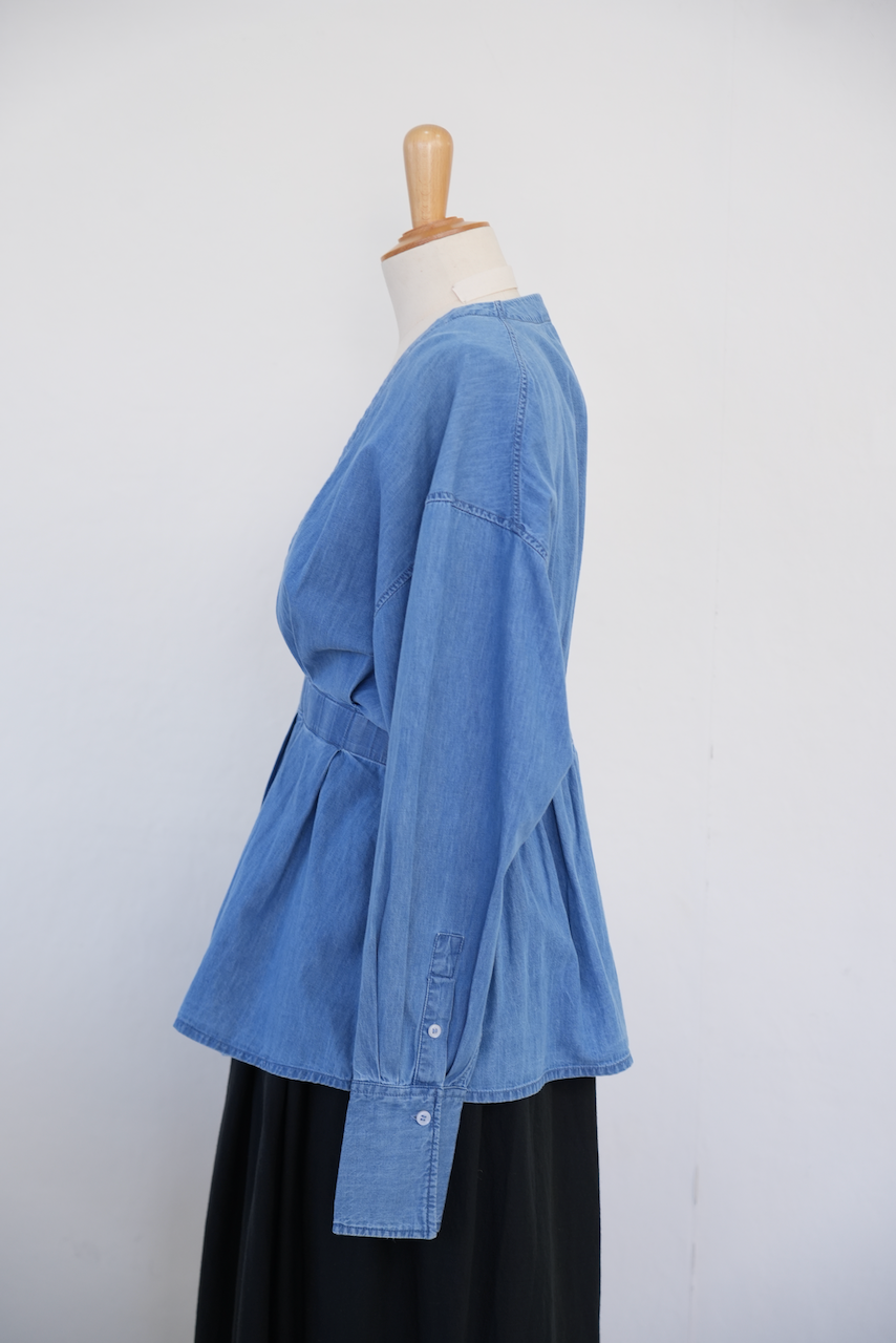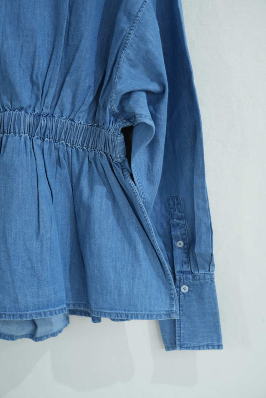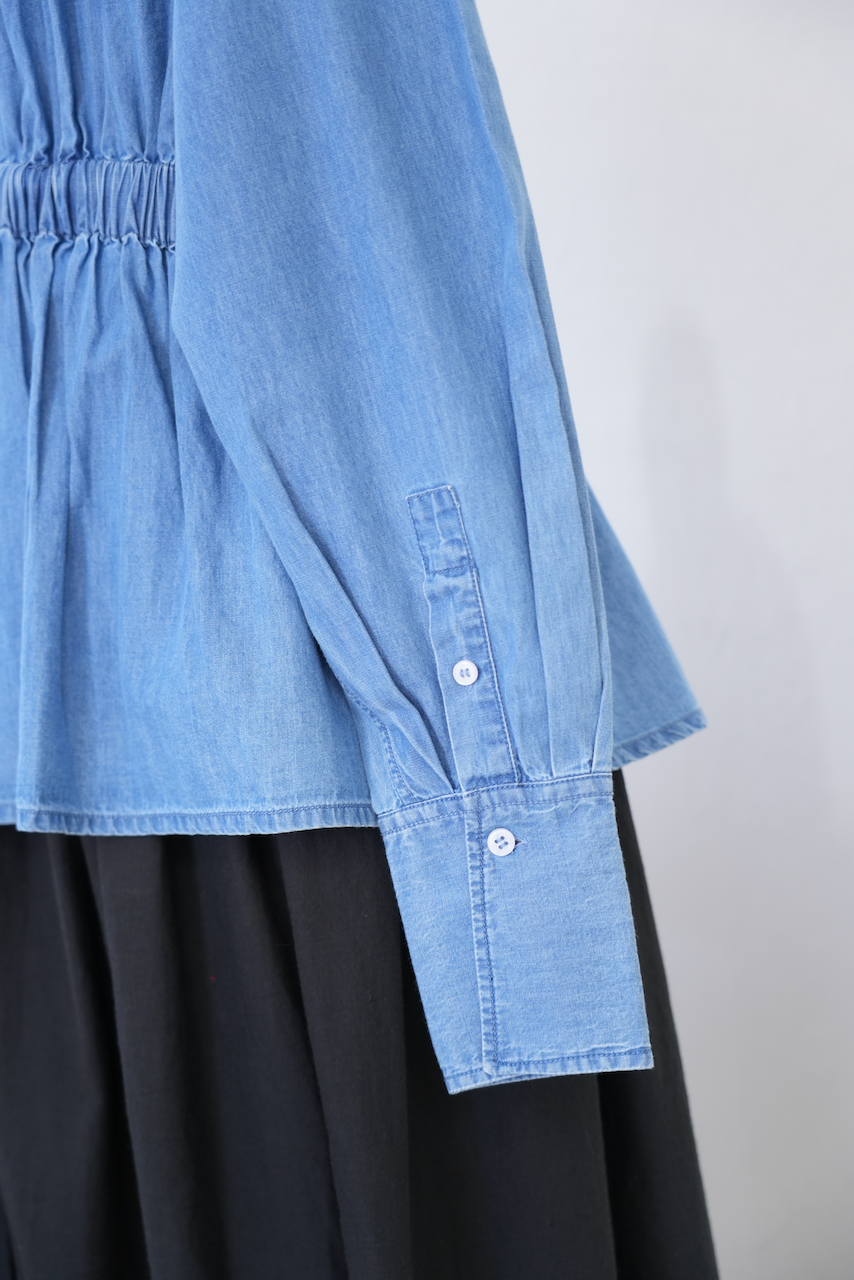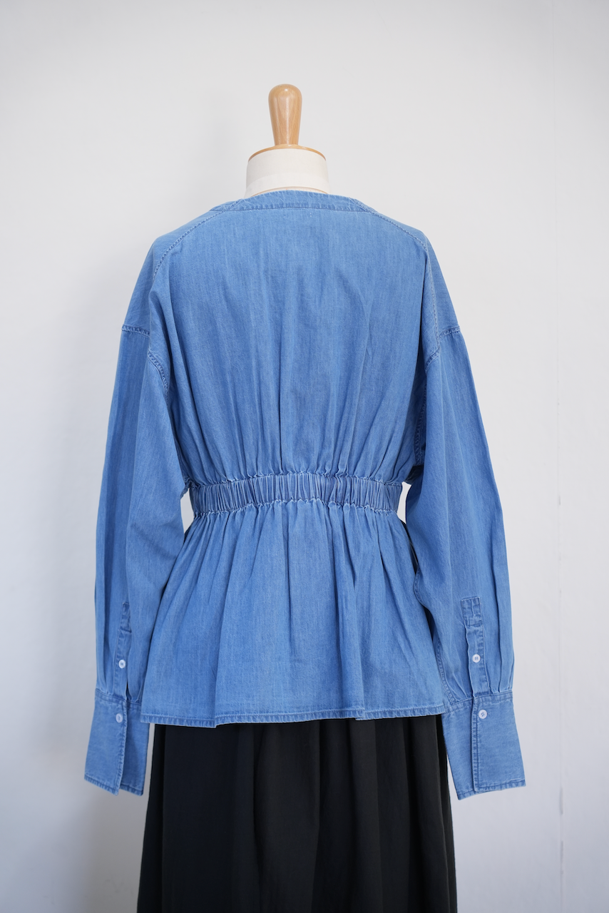 背面のウエスト部分に伸縮性のあるゴムギャザーを配置、春のコーディネイトを盛り上げてくれる一枚です。