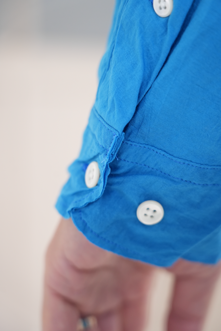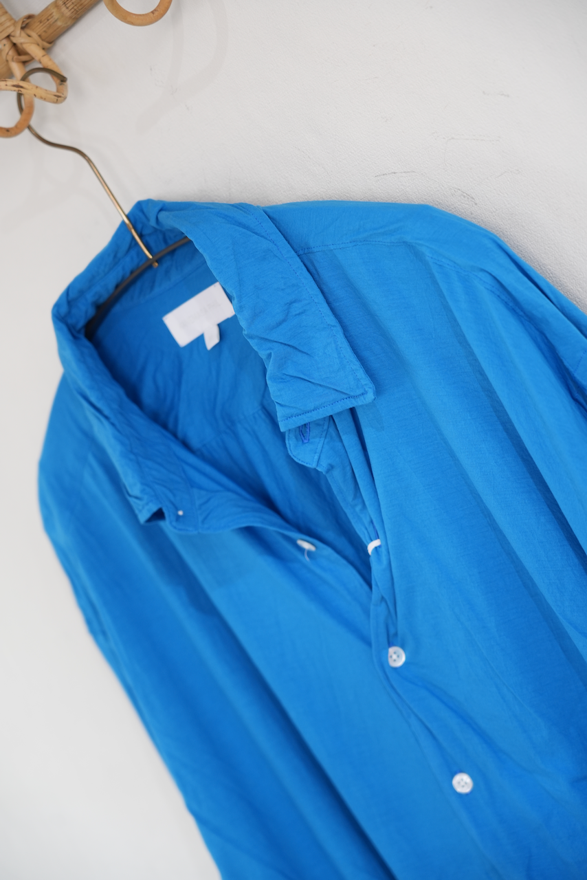 着用を繰り返すことで風合いが増し、体にも馴染み、ひっつく感じも無くなりますので、ご安心下さい。着丈も少し短くすることでドレスシャツの延長ではなく単体として着用しやすいように設計されてます。