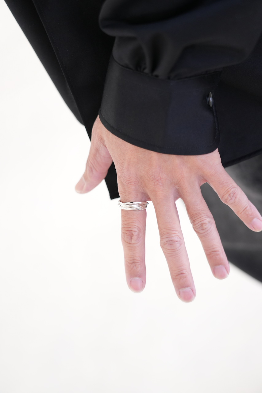 シルバーならではのしっかりとした重さと存在感を生かしながら、シルバージュエリーに施されることが多い“燻し”工程を省き、あえて後加工を最小限に留めることで、男性にも女性にも楽しんでいただけるシンプルな表情に仕上げました。