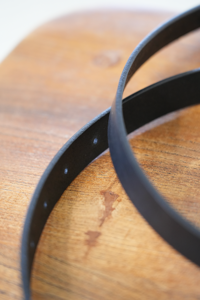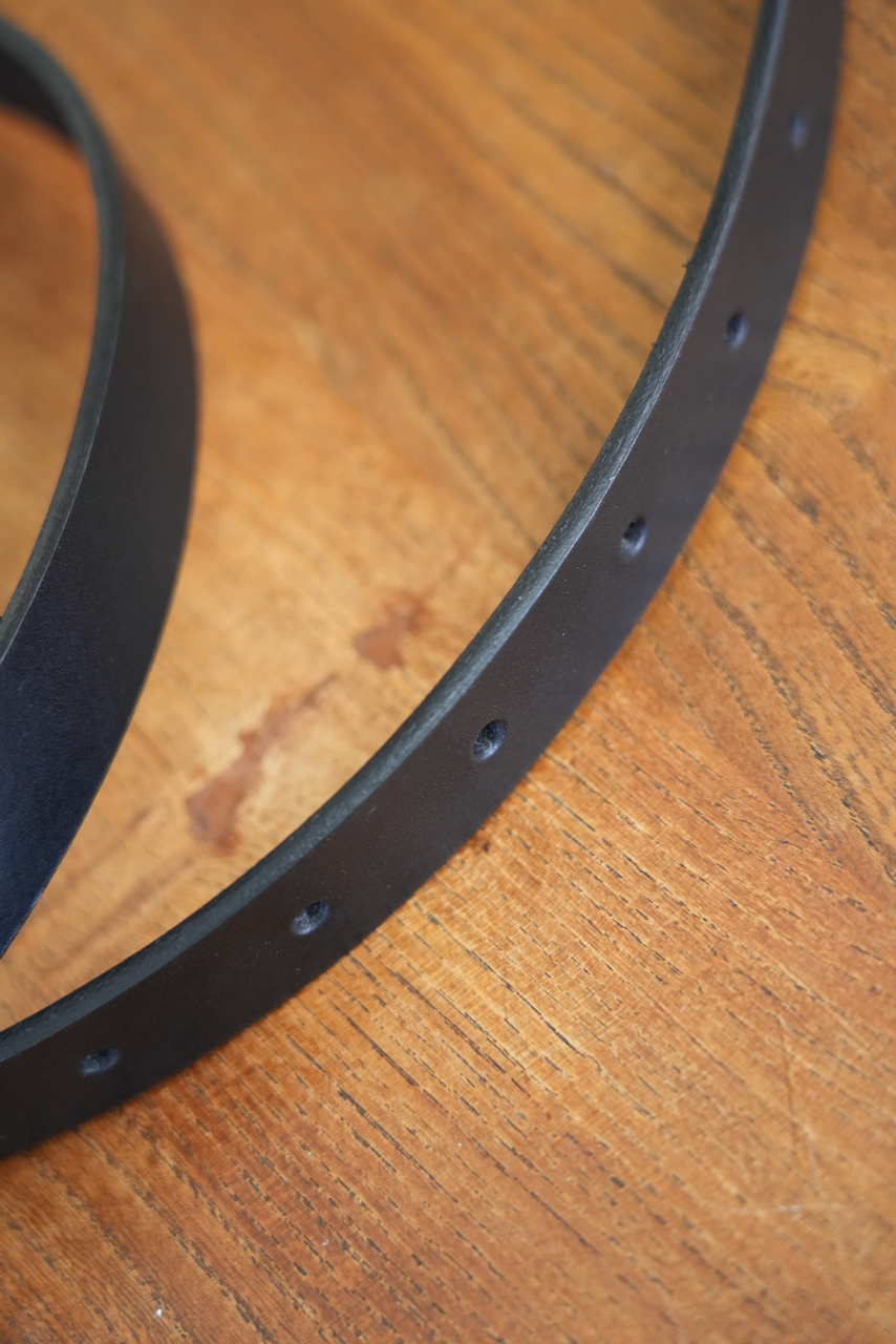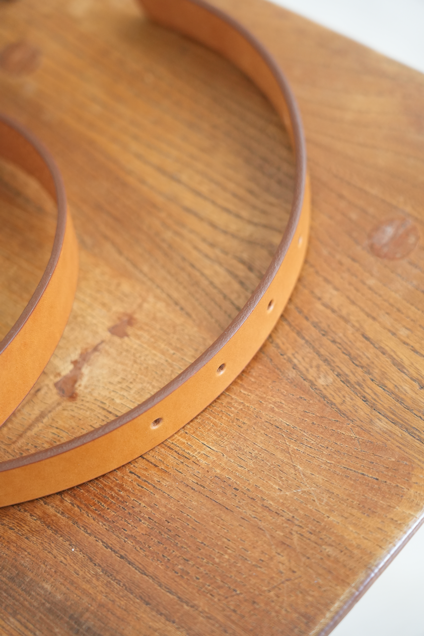 様々なパンツに使いやすい25mm幅のEEL Products定番革ベルトです。