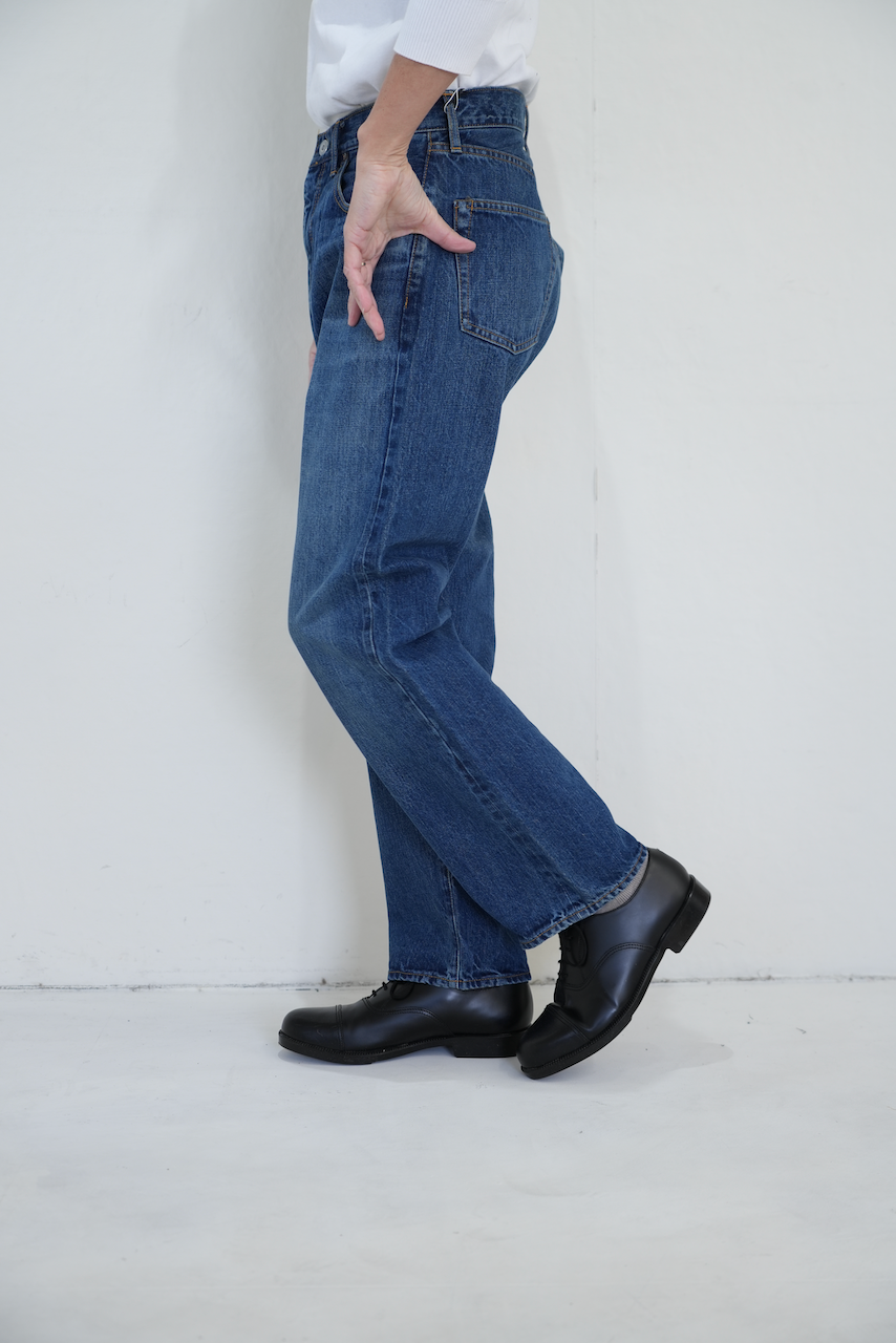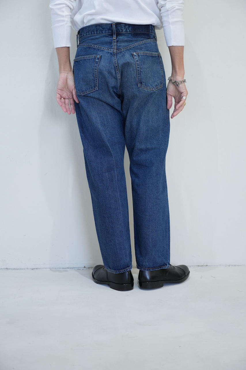 お尻周り、太ももにかけてゆとりを取り、膝から裾にかけて気持ち細くなるテーパードシルエットデニムです。