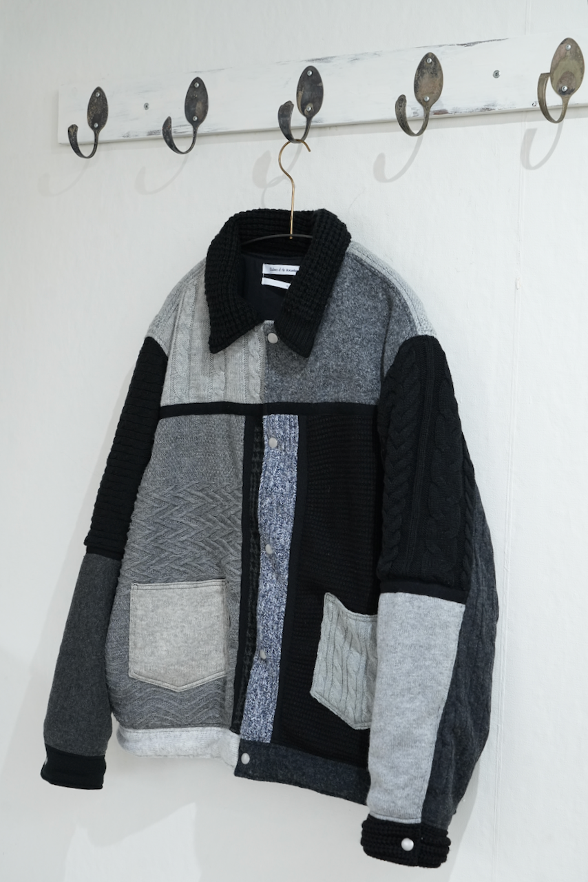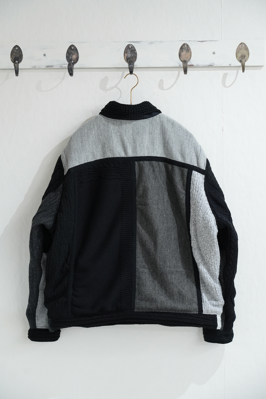 様々なニットをファブリックとして解体・再構築。TYPE2をモチーフとしたショートブルゾン型に作成しました。