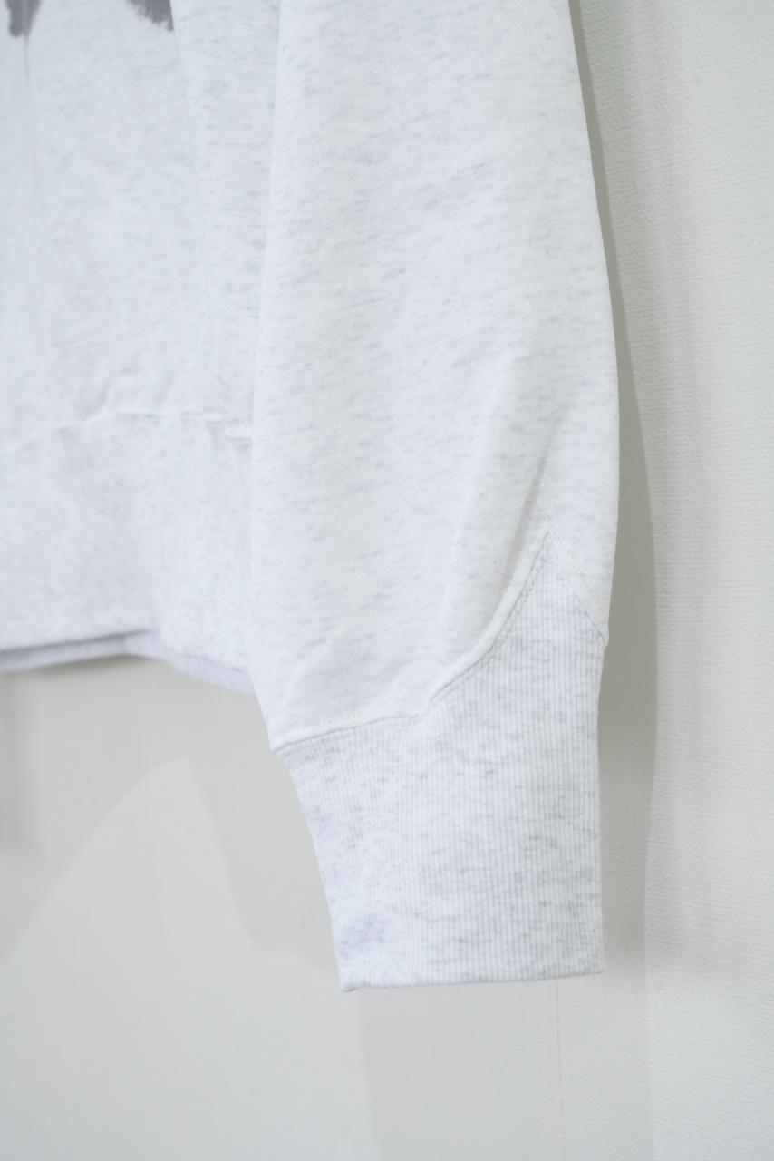 種の選定から、綿花栽培、糸の生産までを全ての工程をオーガニックにこだわった肌理が細かく肌触りの良いオーダニックコットンで仕立てたクルーネックのプリントスウェット。