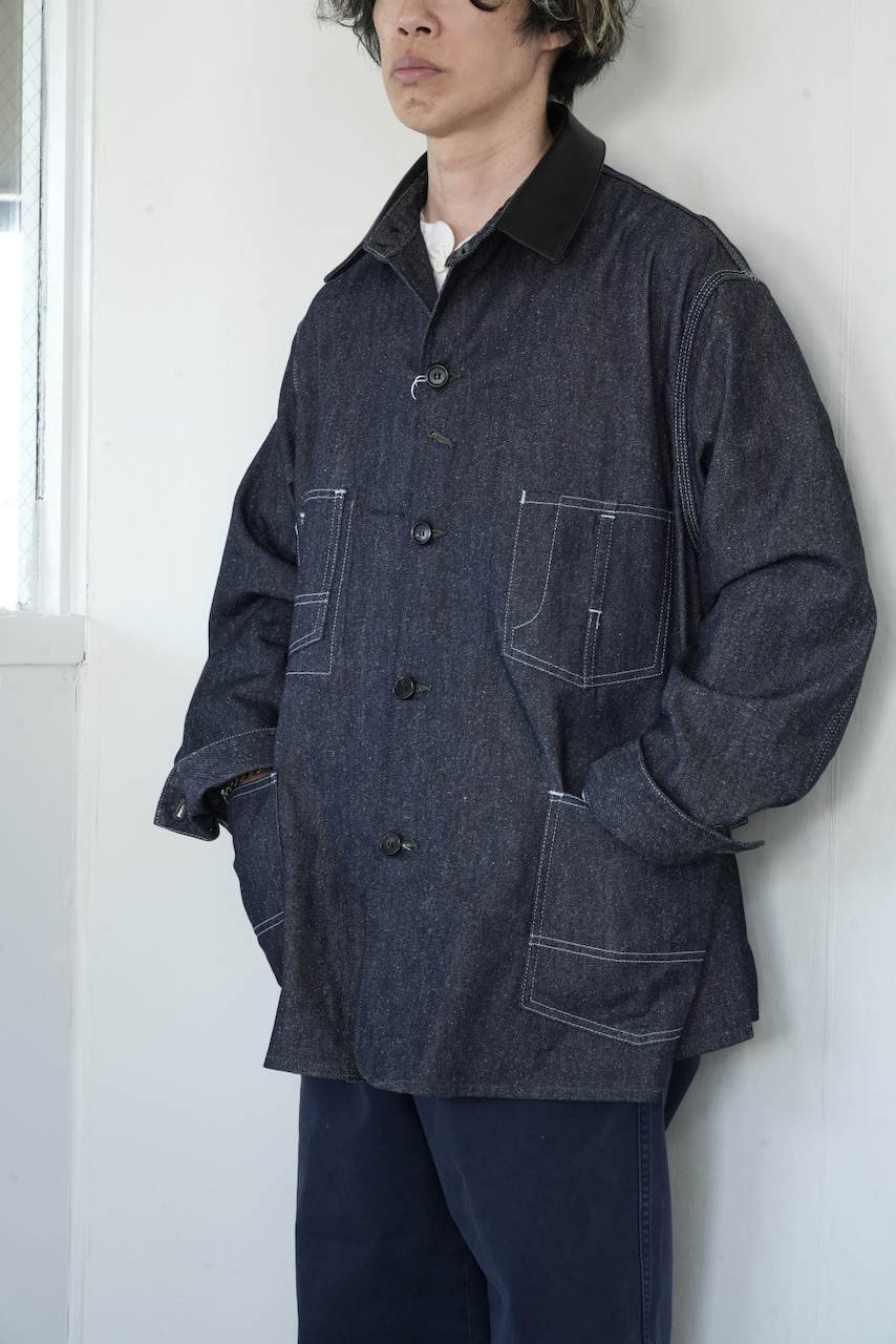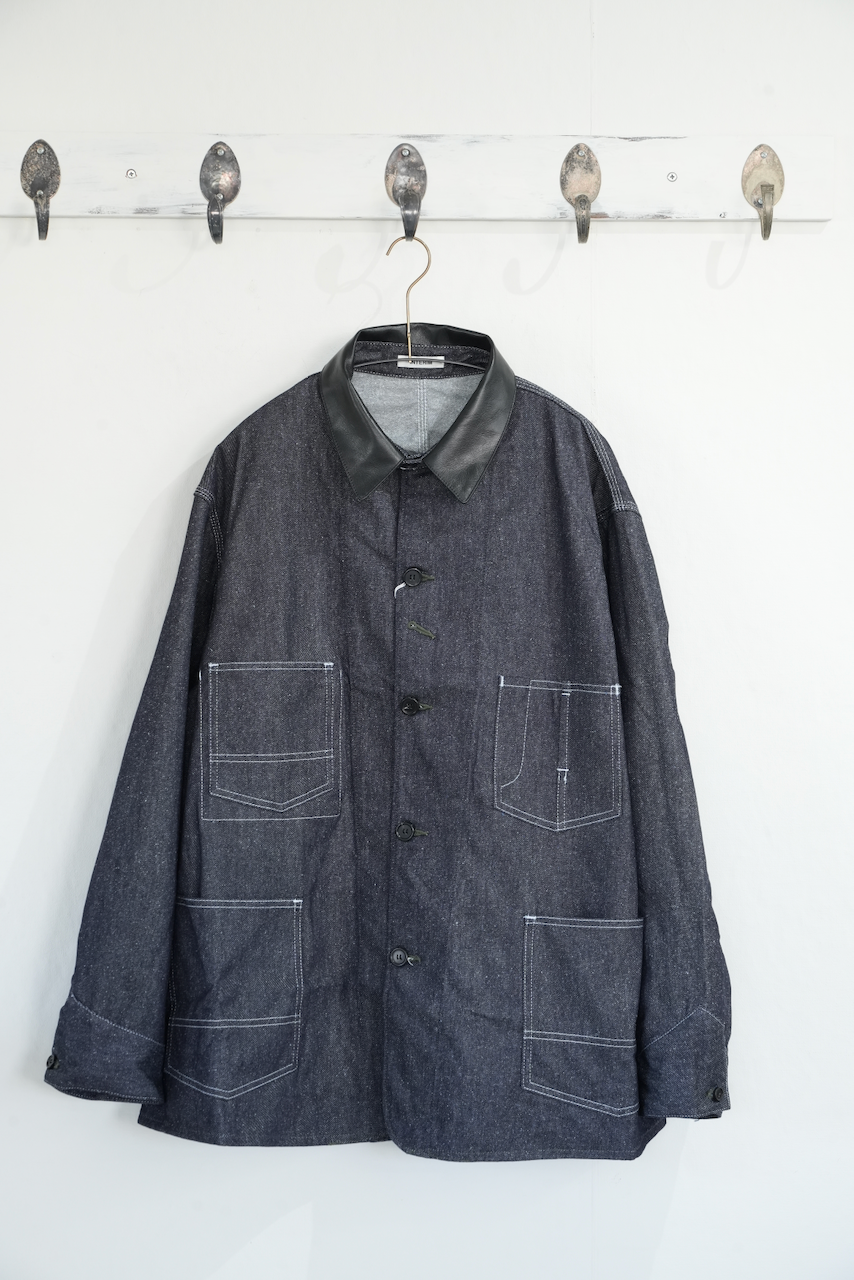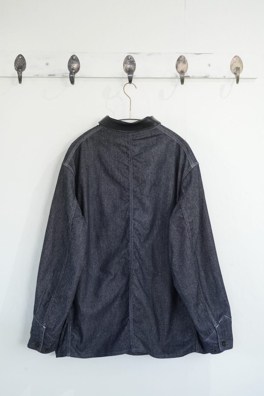INTĒRIM・ GOAT LEATHER COLLAR SILK NOIL DENIM 1st HERCULES COVERALL
