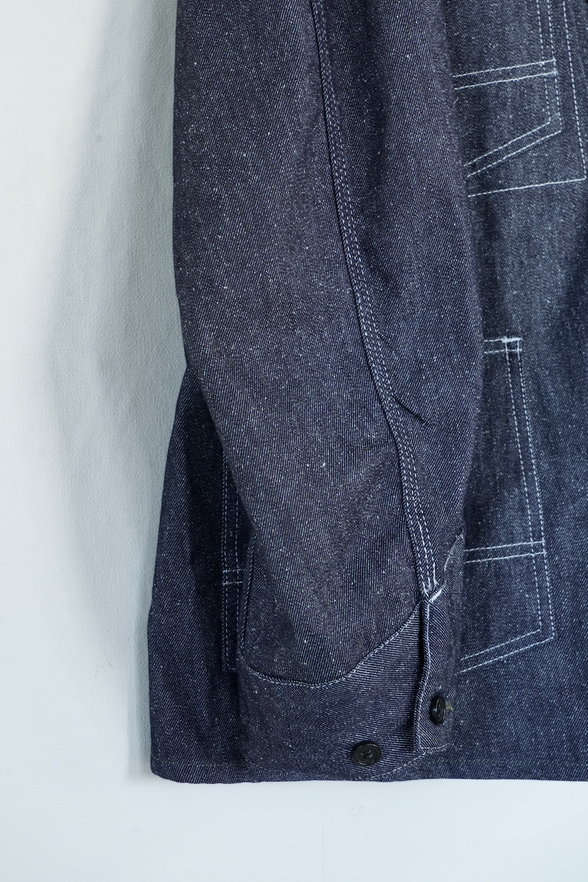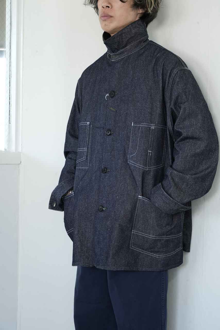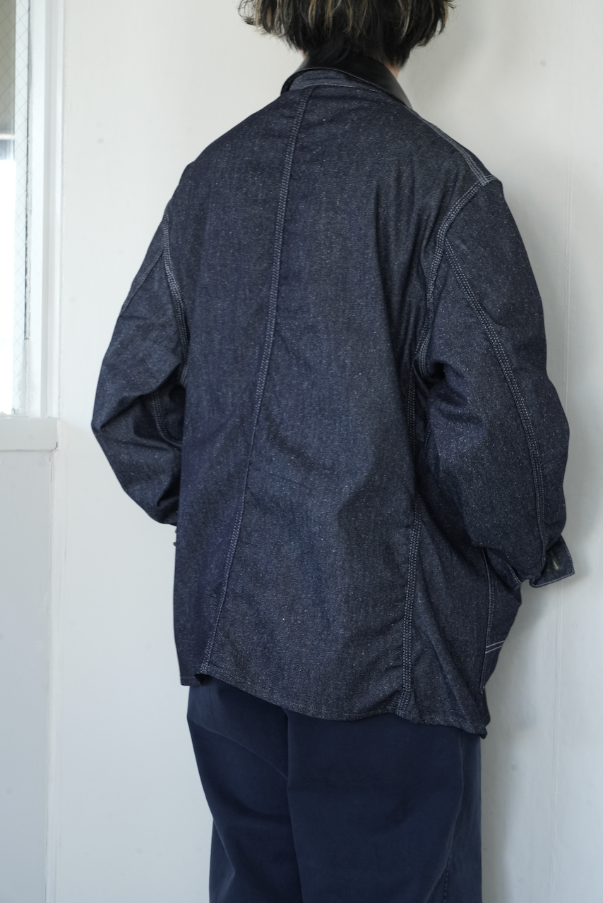 INTĒRIM・ GOAT LEATHER COLLAR SILK NOIL DENIM 1st HERCULES COVERALL
