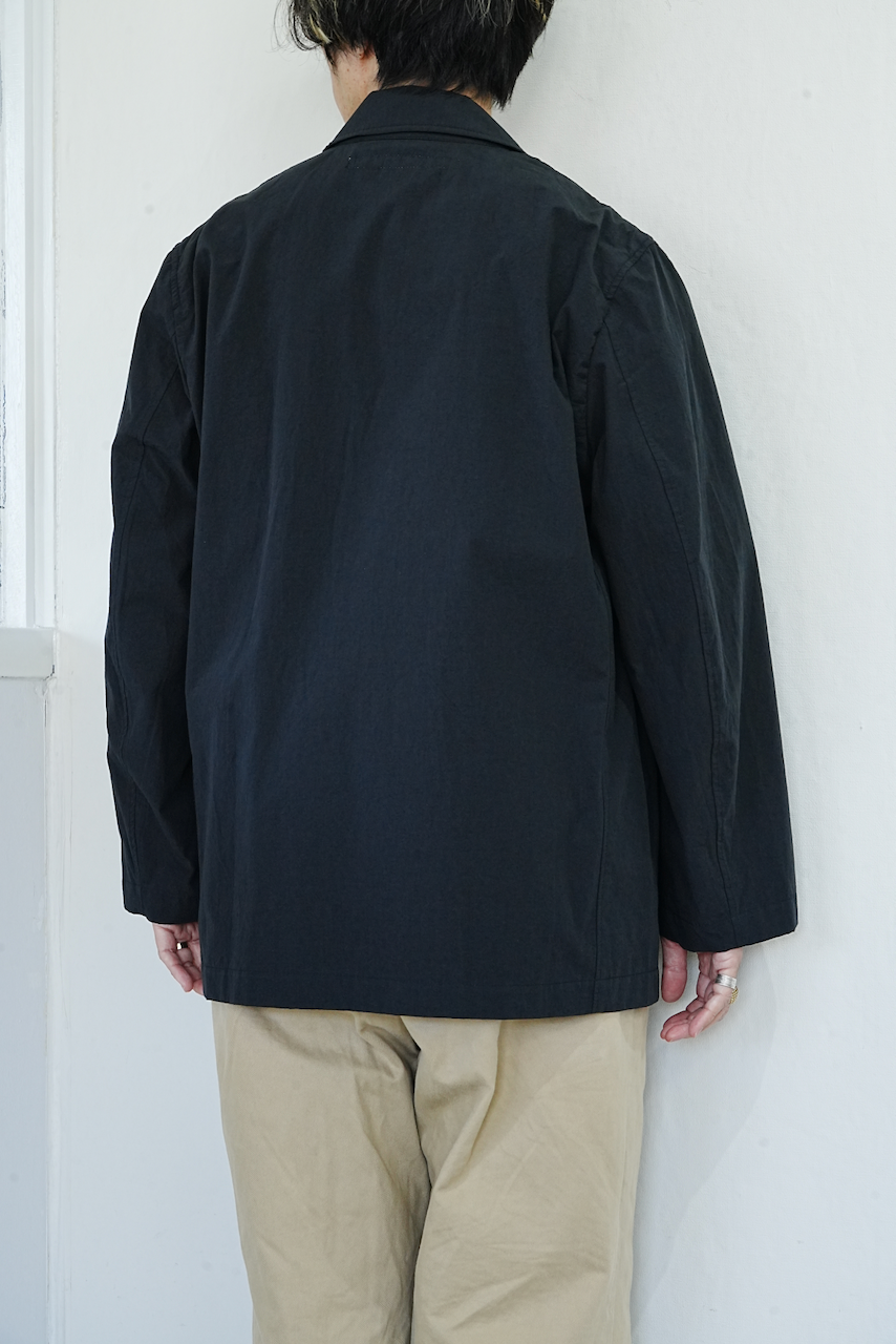 ウェルトポケットが薄い箱ポケットデザイン、また要所のステッチワークから、ワークジャケットのような一面もあります。