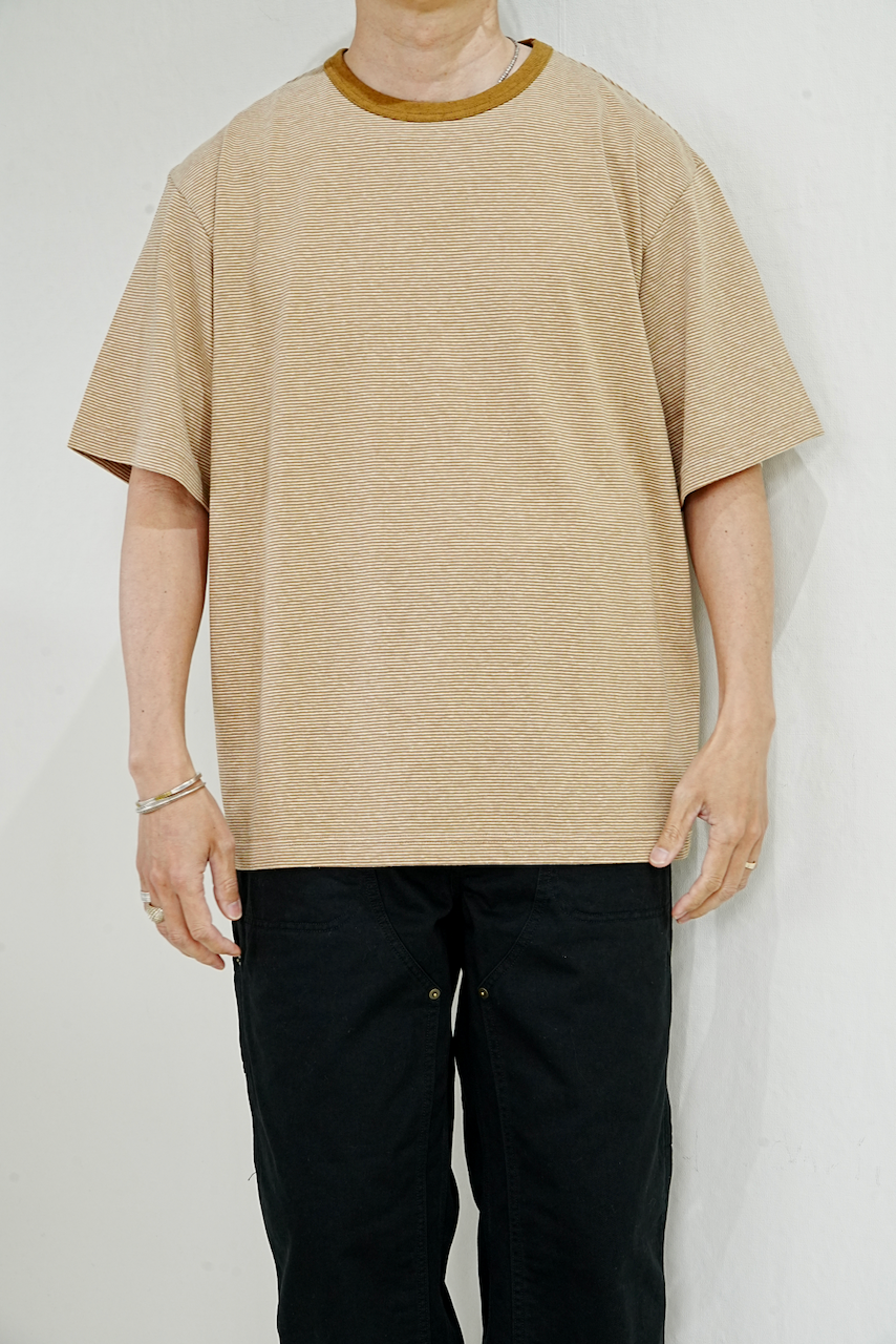 繊維で一番古いとされているヘンプをオーガニックコットンと交互に編み立てたミジンボーダーで仕立てたシャツ。農薬をほぼ使わず強度が強いヘンプ糸を使用し、ヘンプ特有の粗野感と味のある独自の表情で快適な着心地。サイズはスリムシルエットでサイズはビックシルエットになっています。